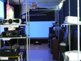 プロジェクターのシュートアウトを展開するホームシアター
