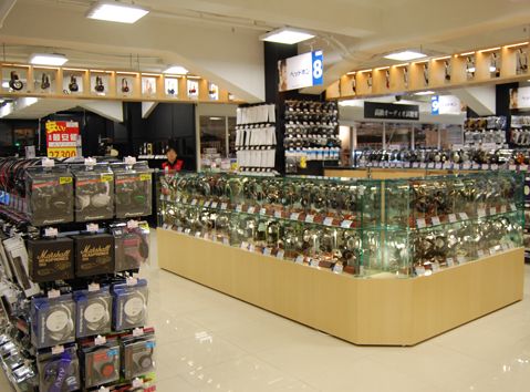 ヘッドホン専門店かと見間違えるかのような怒涛の品揃え。高級ヘッドホンの試聴もできる