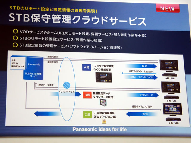 HOME > ニュース > AV&ホームシアターニュース パイオニアは“次世代STB”参考展示 CATV展示会「ケーブルコンベンション」「ケーブル技術ショー」開幕 − 各社が次世代STBや新技術を展示 ファイル・ウェブ編集部 2012年07月18日 前の写真へ 次の写真へ クラウド側で各種設定値を記憶しておき、そのデータをSTBに送ることで様々なソリューションを提供可能 前の写真へ 次の写真へ この写真の記事へ 関連リンク ケーブルコンベンション2012 ケーブル技術ショー2012