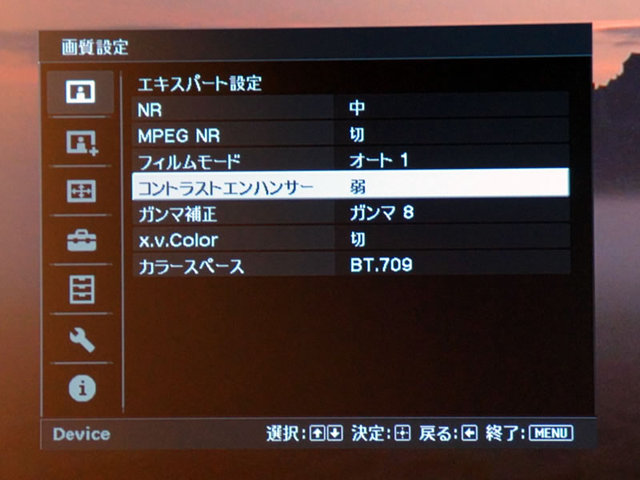 画質設定の「エキスパート設定」からコントラストエンハンサーの調整メニューを表示可能