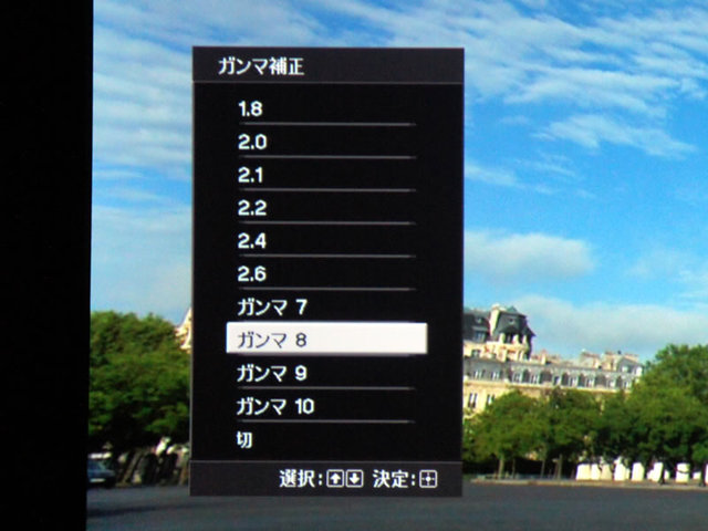 HOME > ニュース > AV&ホームシアターニュース 4K機「VW1000ES」のアルゴリズムを応用 【情報追加】ソニー、新データベース型超解像搭載のSXRDプロジェクター「VPL-HW50ES」 ファイル・ウェブ編集部 2012年08月31日 前の写真へ ガンマ補正のメニュー画面 前の写真へ この写真の記事へ 関連リンク ソニー ソニーストアの製品情報