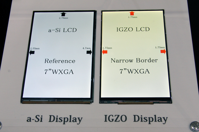 こちらは技術展示。アモルファスシリコン液晶と比べ、狭ベゼル化できることをアピール