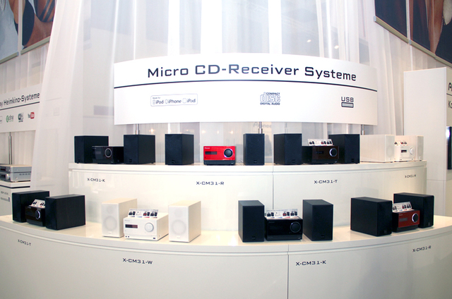 日本でも発売中のiPhone/iPad対応のコンパクトCDミニコンポ「X-CM31」。一番人気色はホワイトで、2番手は意外にもブラウンとのこと
