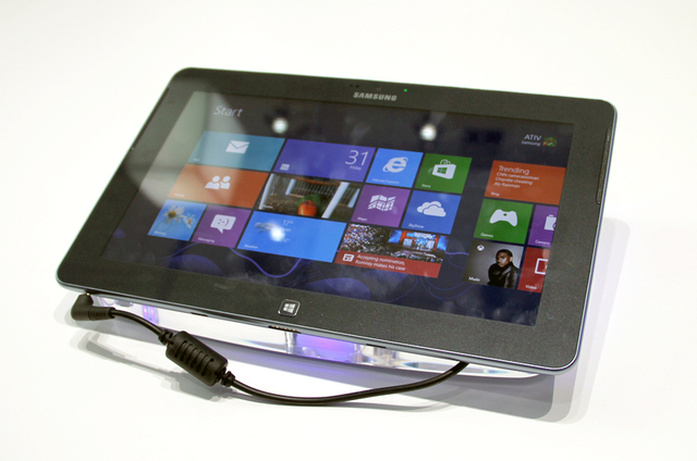 こちらはATIV Tab、10.1型 1366×768ディsぷれいを搭載。薄さ8.9mm、質量は570g。