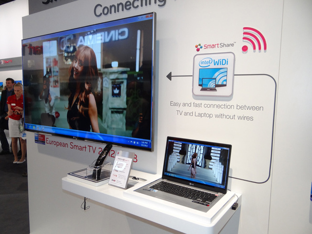 HOME > ニュース > AV&ホームシアターニュース 有機ELテレビはグローバルで年内発売を計画 <IFA>LG、55型有機ELや84型4K液晶テレビを展示 ー 液晶テレビは“Smart TV”化を促進 Phile-web編集部:山本 敦 2012年09月02日 前の写真へ 次の写真へ WiDi機能のデモ 前の写真へ 次の写真へ この写真の記事へ 関連リンク IFA2012日本語サイト LGエレクトロニクス