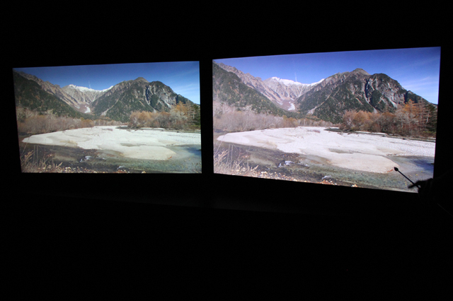 左が通常の業務用アップコンバーターをかけたもの、右がICC-4K液晶。