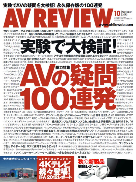 HOME > ニュース > AV&ホームシアターニュース 総力特集は「AVの疑問解決100連発」! 「AVレビュー」10月号は本日発売 − プレゼントのご応募はこちらから! ファイル・ウェブ編集部 2012年09月18日 「AVレビュー」2012年10月号の表誌 この写真の記事へ 関連リンク Amazonでのご購入はこちらから