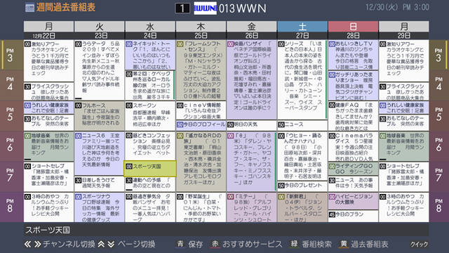 単一チャンネルの「週間過去番組表」も表示可能
