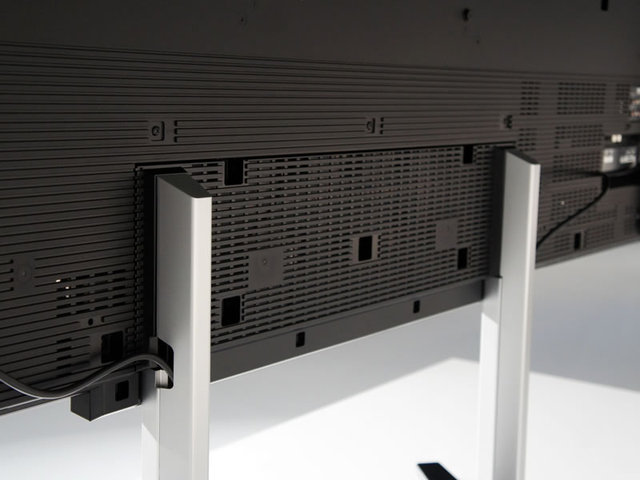 電源コードやHDMIケーブルなどをスタンドの脚内部に通して配線を隠すこともできるデザインを採用