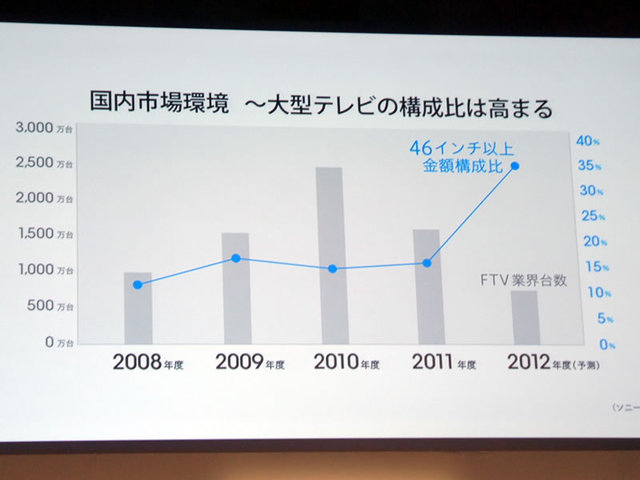 国内のテレビ市場は大型化が年々進んでいると説明