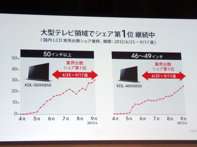 大型テレビ領域でHX850シリーズがシェアナンバー1を続けていることも紹介