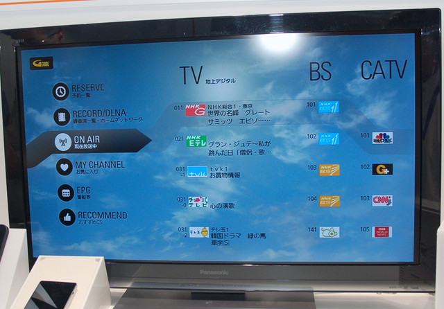 HOME > ニュース > AV&ホームシアターニュース 4G LTEもアピール <CEATEC>KDDI、Android 4.0 STB「Smart TV Box」をデモ − スティック型「Smart TV」も参考展示 ファイル・ウェブ編集部 2012年10月02日 前の写真へ 次の写真へ 放送番組の視聴メニュー 前の写真へ 次の写真へ この写真の記事へ 関連リンク KDDI CEATEC JAPAN 2012 CEATEC JAPAN 2012 関連ニュース
