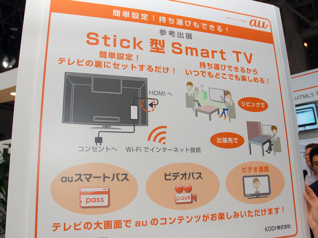 HOME > ニュース > AV&ホームシアターニュース 4G LTEもアピール <CEATEC>KDDI、Android 4.0 STB「Smart TV Box」をデモ − スティック型「Smart TV」も参考展示 ファイル・ウェブ編集部 2012年10月02日 前の写真へ 次の写真へ 「Stick型Smart TV」の概要 前の写真へ 次の写真へ この写真の記事へ 関連リンク KDDI CEATEC JAPAN 2012 CEATEC JAPAN 2012 関連ニュース