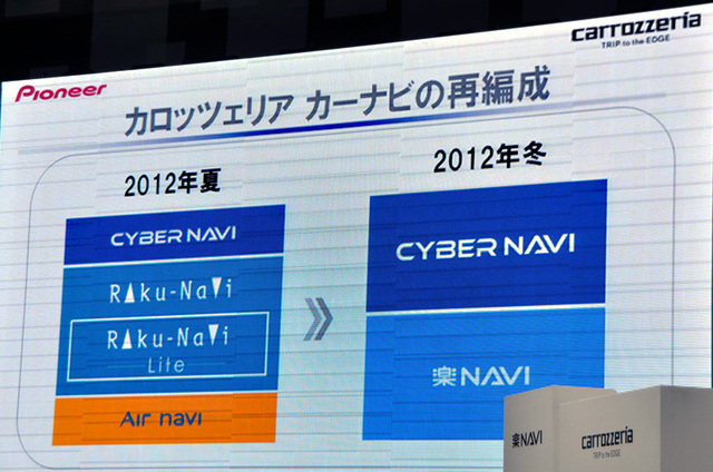 HOME > ニュース > AV&ホームシアターニュース STEEZやMixTraxなどのデモも <CEATEC>パイオニア、ジェスチャー操作対応新「楽ナビ」発売/「A-70」など近日発売製品展示デモ ファイル・ウェブ編集部 2012年10月02日 前の写真へ 次の写真へ カーナビブランドを2つに統合。ロゴも変更する 前の写真へ 次の写真へ この写真の記事へ 関連リンク CEATEC JAPAN 2012 パイオニア カロッツェリア製品情報ページ