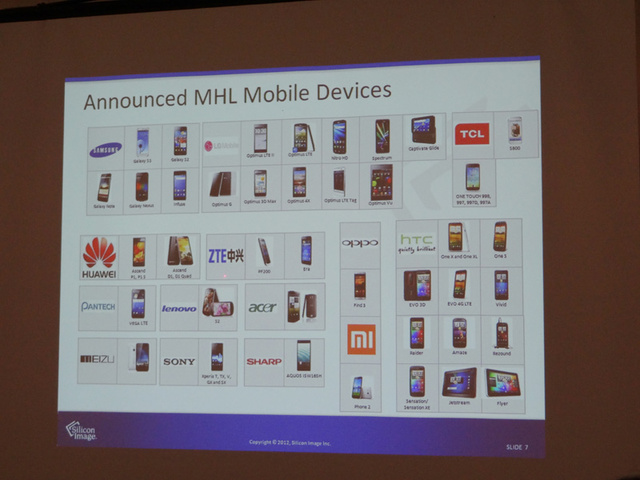 HOME > ニュース > AV&ホームシアターニュース 4K対応プロセッサーのサンプルを発表 <CEATEC>シリコンイメージ、「MHL 2.0」対応製品やテレビ向け「InstaPrevue」チップを発表 Phile-web編集部 2012年10月03日 次の写真へ MHL対応のモバイルデバイス 次の写真へ この写真の記事へ 関連リンク シリコンイメージ CEATEC JAPAN 2012