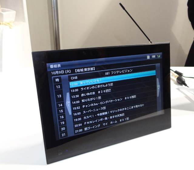 HOME > ニュース > AV&ホームシアターニュース 防水設計でお風呂でも楽しめる ソフトバンク、フルセグテレビ視聴機能を搭載したフォトフレーム「PhotoVision TV」 Phile-web編集部 2012年10月09日 次の写真へ 番組表の表示にも対応 次の写真へ この写真の記事へ 関連リンク ソフトバンクモバイルの製品情報