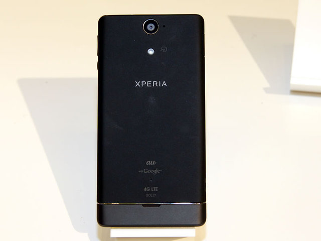 背面の様子。下部にラインが入っているなどドコモの「Xperia AX」とは微妙にデザインが異なる