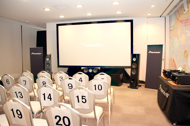 HOME > ニュース > AV&ホームシアターニュース カロッツェリアのフラグシップカーも <音展>パイオニア「SC-LX86」中心のハイエンドシアター/新2chコンポA-70&PD-70も登場 ファイル・ウェブ編集部 2012年10月19日 次の写真へ パイオニアのハイエンドシアター。146インチの大画面、EXシリーズスピーカーによる5.1ch音声、フラグシップモデル群による再生が楽しめる 次の写真へ この写真の記事へ 関連リンク オーディオ・ホームシアター展 2012 公式サイト オーディオ・ホームシアター展 2012 レポート記事一覧