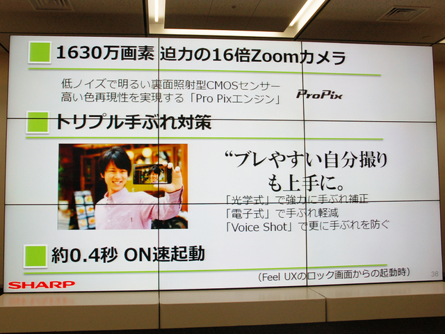 1630万画素の16倍ズームカメラはドコモ向け「AQUOS PHONE ZETA SH-02E」と、ソフトバンク向け「AQUOS PHONE 203SH」が搭載する