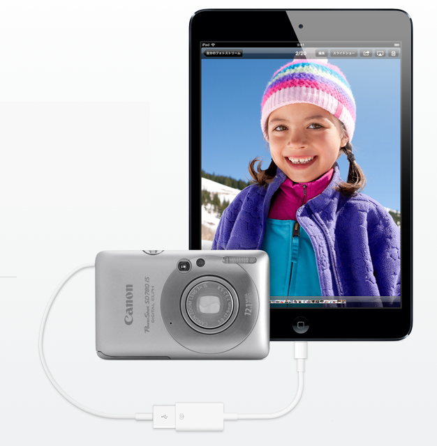 HOME > ニュース > AV&ホームシアターニュース 発売時期や価格は未定 アップル、「Lightning - USBカメラアダプタ」など発売 ファイル・ウェブ編集部 2012年10月24日 前の写真へ 「Lightning - USBカメラアダプタ」の使用イメージ 前の写真へ この写真の記事へ 関連リンク iPad アクセサリー紹介ページ アップル