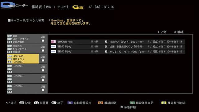 「見つかる番組検索」ではキーワードに加え、ジャンルやサブジャンル、特徴を組み合わせて番組を検索可能