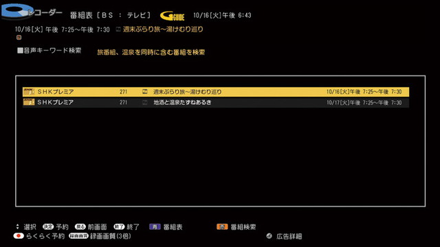 HOME > ニュース > AV&ホームシアターニュース スマホ音声操作にも対応 シャープ、「見どころポップアップサーチ」搭載のAQUOSブルーレイ ファイル・ウェブ編集部 2012年10月30日 前の写真へ 次に「温泉」と検索すると、「旅」と「温泉」両方に合致した番組だけが絞り込まれる 前の写真へ この写真の記事へ 関連リンク シャープ発表のニュースリリース シャープ