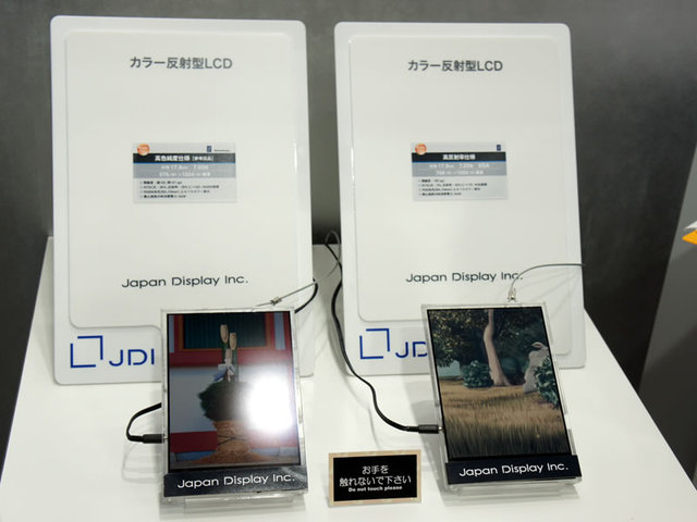 カラー反射型ディスプレイは7.03型/182ppiの高反射率仕様のものに加え、7.03型で縦182ppi/横137ppiの高色純度仕様のものも参考出展
