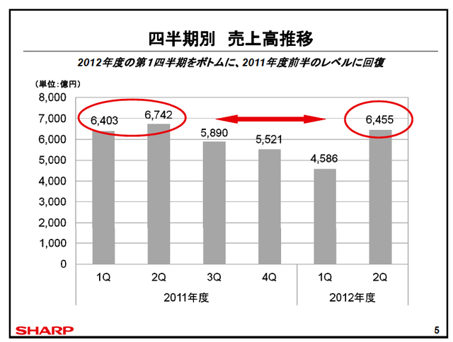 四半期別の売上高が2011年度前半のレベルにまで回復してきていることを説明