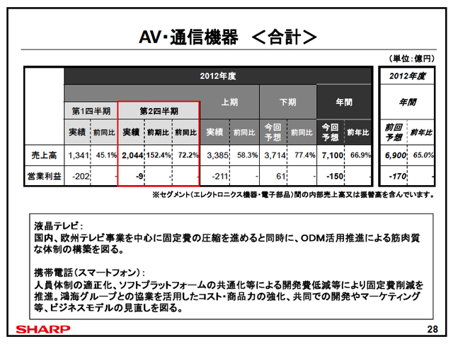 【更新】シャープ、2Q業績は純損失3,875億円 − 通期予想も純損失4,500億円に大幅下方修正