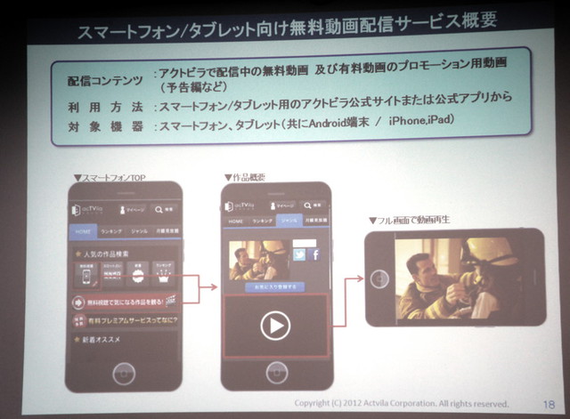 - アクトビラ、2012年度はスマホ対応機能拡充/映画館連携などプラットフォーム強化を推進 2012/05/10