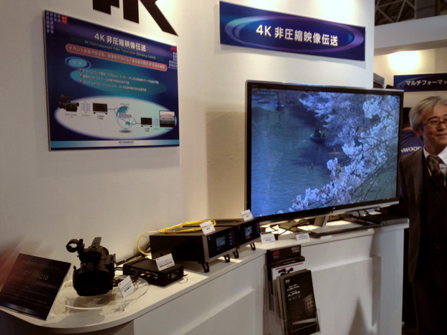 HOME > ニュース > AV&ホームシアターニュース 民生用も視野の新フォーマット「XAVC」も 【Inter BEE 映像編】ソニーなど4K展示を本格化、次世代コーデック「HEVC」関連展示も ファイル・ウェブ編集部 2012年11月14日 前の写真へ 次の写真へ GY-HMQ10を使った4Kの非圧縮伝送システムをデモしていた 前の写真へ 次の写真へ この写真の記事へ 関連リンク Inter BEE
