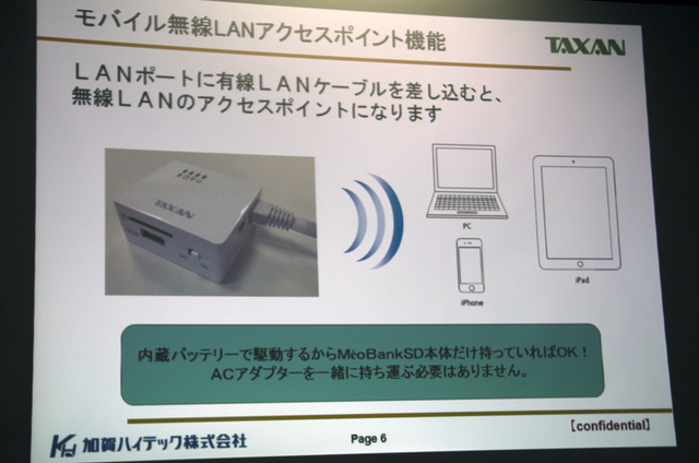 有線LANポートに接続すればモバイルアクセスポイントとしても利用できる
