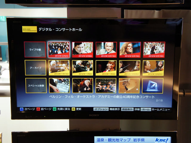HOME > ニュース > AV&ホームシアターニュース 「デジタル・コンサートホール」のフルHD化も発表 ベルリン・フィルの4K/DSD上映イベントがソニービルで開幕 ファイル・ウェブ編集部 2012年11月26日 前の写真へ 次の写真へ 「デジタル・コンサートホール」のUI。12月中にフルHD配信を行うことも発表 前の写真へ 次の写真へ この写真の記事へ 関連リンク イベントの詳細 特別インタビュー(1) ベルリンフィルとソニーの協業で「デジタル・コンサートホール」はどう変わる? 特別インタビュー(2) ソニー担当者が語るベルリンフィル《ワルキューレ》4K&DSD収録秘話