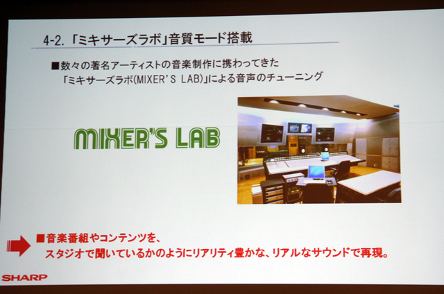 HOME > ニュース > AV&ホームシアターニュース 価格は2,625,000円 シャープ、60V型のICC 4Kテレビ「ICC PURIOS」【更新】 ファイル・ウェブ編集部 2012年12月13日 前の写真へ 「音楽 ミキサーズラボ」モードも備えた 前の写真へ この写真の記事へ 関連リンク シャープ 本製品のニュースリリース “自然界の光を再現する”「ICC-4Kテレビ」の詳細に迫る − アイキューブド研究所 近藤所長インタビュー