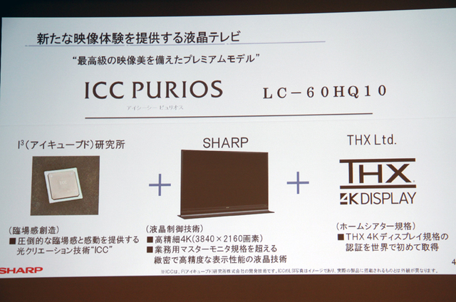 HOME > ニュース > AV&ホームシアターニュース 価格は2,625,000円 シャープ、60V型のICC 4Kテレビ「ICC PURIOS」【更新】 ファイル・ウェブ編集部 2012年12月13日 前の写真へ 次の写真へ 「LC-60HQ10」の詳細 前の写真へ 次の写真へ この写真の記事へ 関連リンク シャープ 本製品のニュースリリース “自然界の光を再現する”「ICC-4Kテレビ」の詳細に迫る − アイキューブド研究所 近藤所長インタビュー