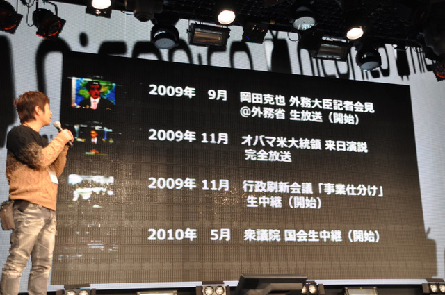 09年9月に岡田外務大臣がニコニコ生放送のオープン記者会見を行ったことがブレイクのきっかけになったという