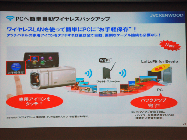 PCとWi-Fi連携し、ワイヤレスでバックアップが行える