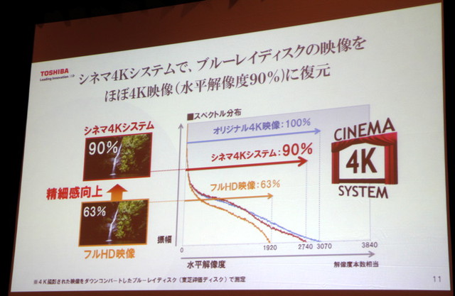 シネマ4KシステムでアップコンしたフルHD映像は、オリジナルの4K映像比で約90%の精細感を保つという