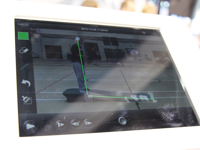 専用アプリの画面。ハイスピード撮影した映像からフォームを分析できる
