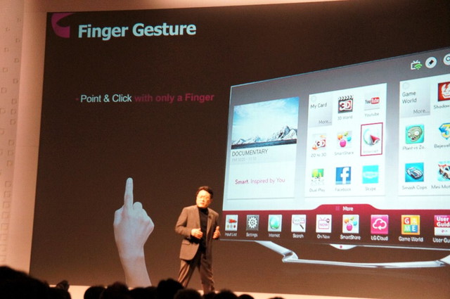 HOME > ニュース > AV&ホームシアターニュース 韓国2大メーカーが牽引 【CES】UIの革新競う各社スマートTV − 音声認識や指ジェスチャーも実用化 折原一也 2013年01月18日 前の写真へ 次の写真へ 指一本で操作できるジェスチャー操作機能を新搭載した 前の写真へ 次の写真へ この写真の記事へ 関連リンク 2013 International CES レポート一覧 International CES 公式サイト