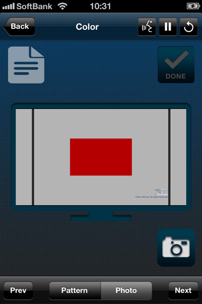 映像のカラー調整メニュー。iPhone/iPadのカメラで画面を撮影しながら行う