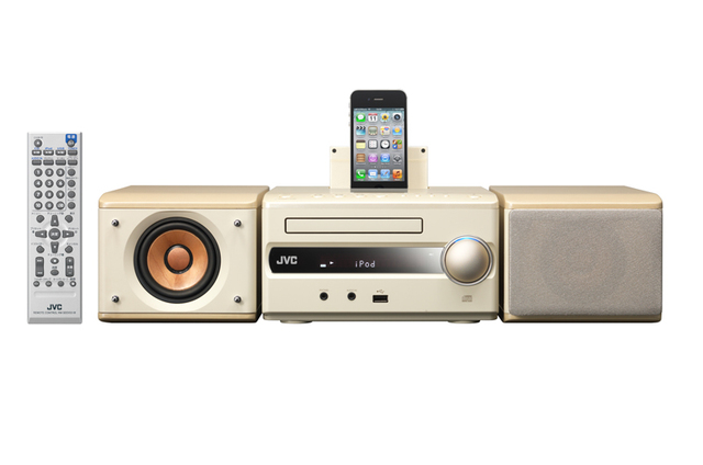 30ピンiPodドック等を搭載するセンターユニットに、スピーカーのペア、専用リモコンによる商品構成