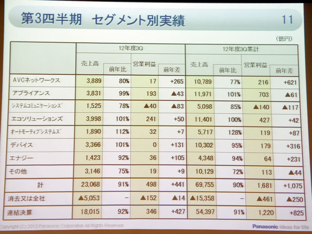 【情報追加】パナソニック、3Q決算発表 − 純損失6,238億円も営業利益は増加
