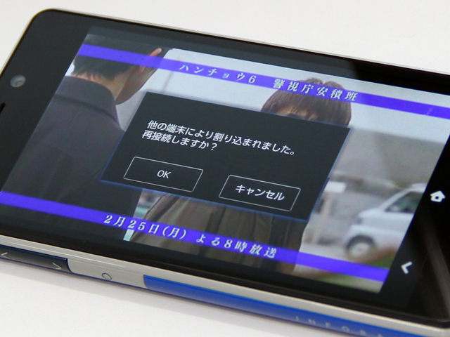 HOME > ニュース > AV&ホームシアターニュース iPhone/iPadにも対応予定 KDDI、BDレコーダーの録画・受信番組を外出先で視聴できる「Remote TV」 ファイル・ウェブ編集部 2013年02月19日 前の写真へ 視聴中に他のデバイスから割り込まれるとこのようなアラートが出る 前の写真へ この写真の記事へ 関連リンク 本件のニュースリリース 「Remote TV」の詳細
