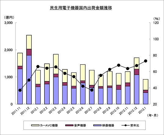 - 薄型テレビ出荷は前年比7割減 − 8月度の民生用電子機器国内出荷実績 2012/09/24