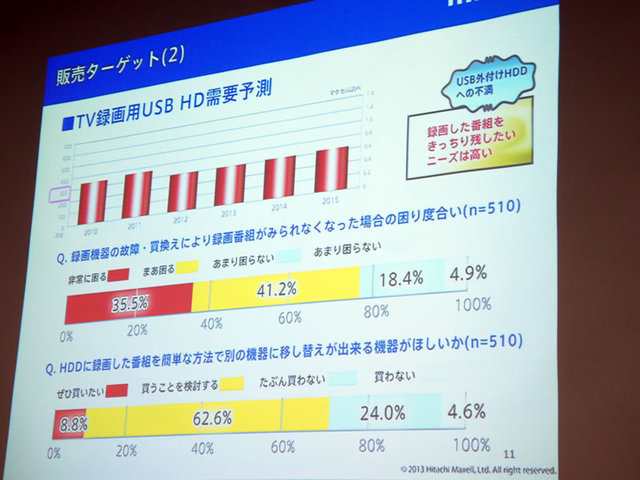 USB-HDD市場にも言及。機器を買い替えるとUSB-HDD内のコンテンツが観られなくなることに対する不満が高かったという