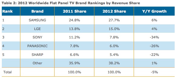 ディスプレイサーチ、12年の世界テレビ出荷状況は対前年比6%のマイナス