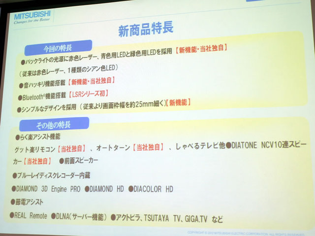三菱、液晶テレビ“REAL LASERVUE”新フラグシップ機 − 青色用/緑色用LEDの搭載などで高画質化