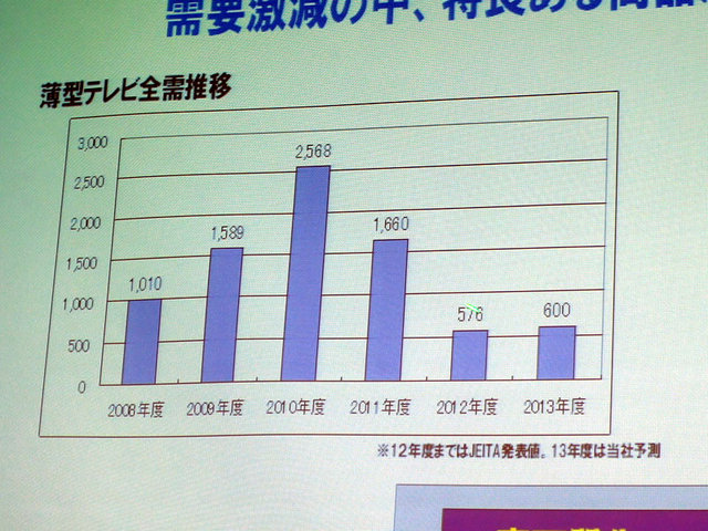 薄型テレビの需要動向。地デジ移行の反動で2012年度が大きく落ち込んだ