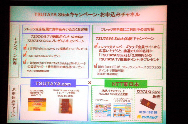 HOME > ニュース > AV&ホームシアターニュース 「TSUTAYA TV」が視聴できるスティック型端末 TSUTAYA.com、VOD端末「TSUTAYA Stick」開発 − NTT東日本と拡販・サポートで提携 ファイル・ウェブ編集部 2013年04月16日 前の写真へ 次の写真へ TSUTAYA.comとNTT東日本のキャンペーンと申込チャンネル一覧 前の写真へ 次の写真へ この写真の記事へ 関連リンク TSUTAYA TV NTT東日本 TSUTAYA TV キャンペーンサイト(4月17日午前9時公開予定) NTT東日本キャンペーンサイト(4月17日午前9時公開予定)